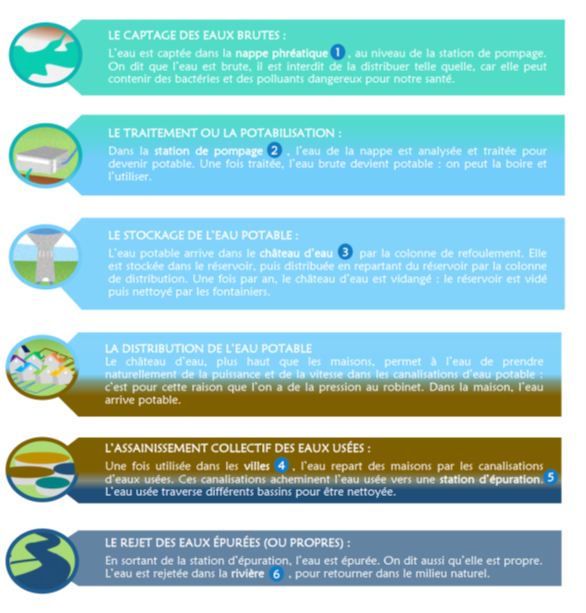 En ville et à la campagne, l’eau réalise un circuit que l’on appelle cycle de l’eau domestique.