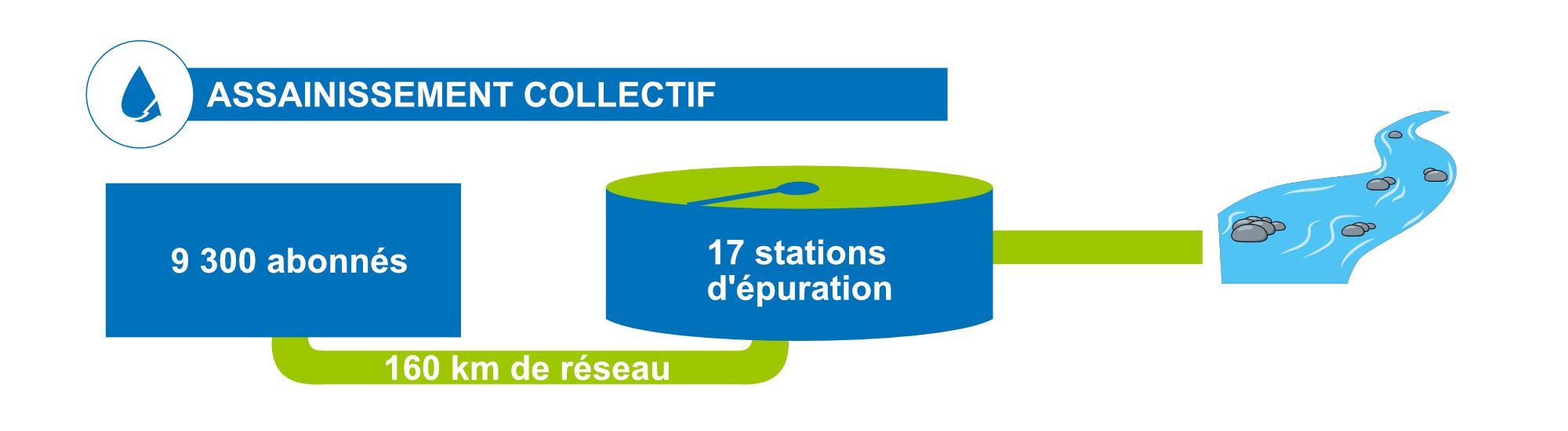 ➡️ En matière d'assainissement collectif, cela veut dire aussi le gérer de A à Z : des canalisations d'eaux usées dans lesquelles s’écoulent les eaux usées de vos installations sanitaires et domestiques à la station de traitement des eaux usées jusqu'à leur reversement, lorsque les eaux sont redevenues propres, dans les rivières. Et pour ce faire, je dois m'assurer de l'entretien des 160 km de canalisations dédiées à l'assainissement et au bon fonctionnement des 17 stations de traitement voire à leur remplacement lorsque ceux-ci sont jugés obsolètes.